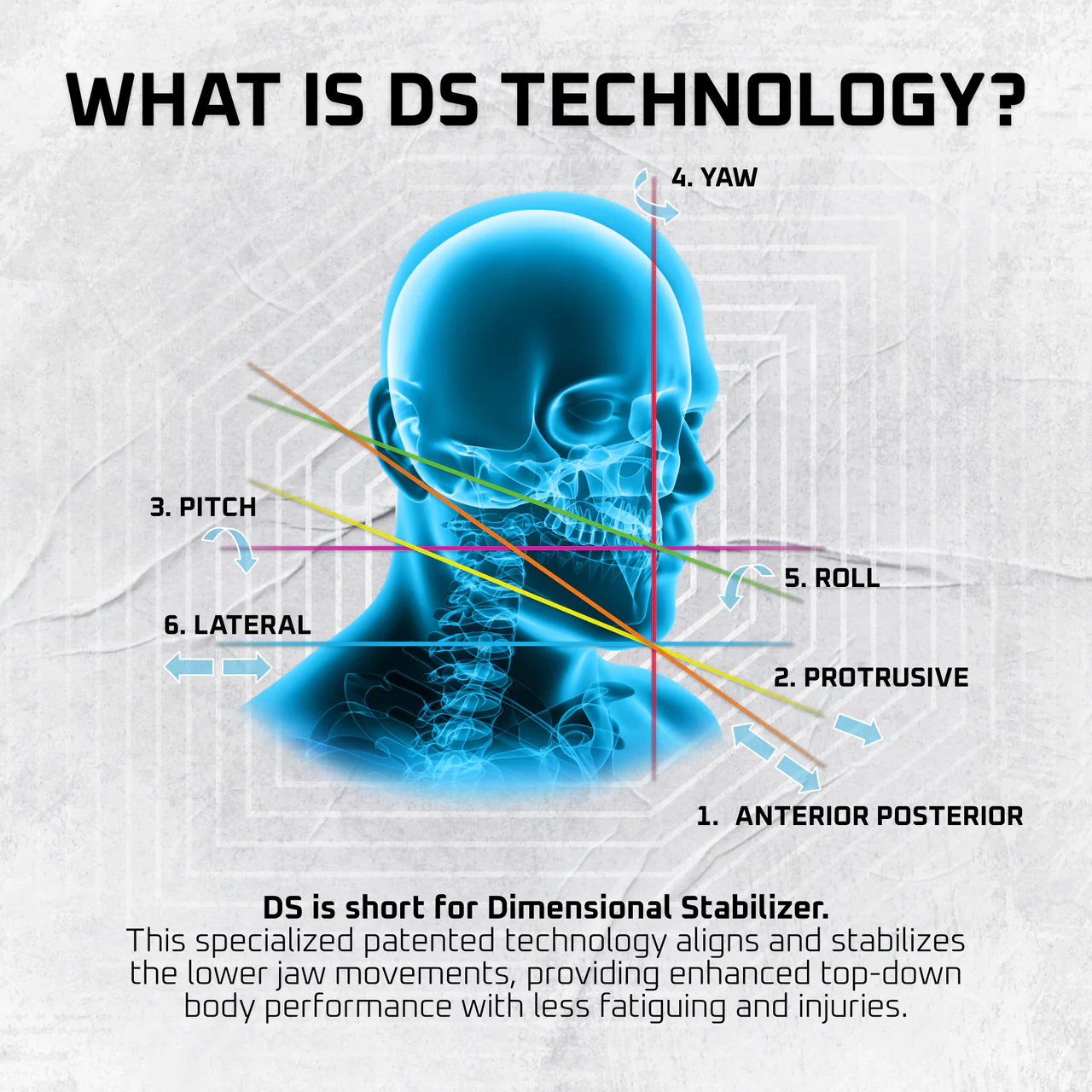 Unlike other mouthpieces on the market, the 6DS mouthpiece offers stability for six dimensions of your jaw: Anterior Posterior, Protrusive, Pitch, Yaw, Roll, and Lateral.